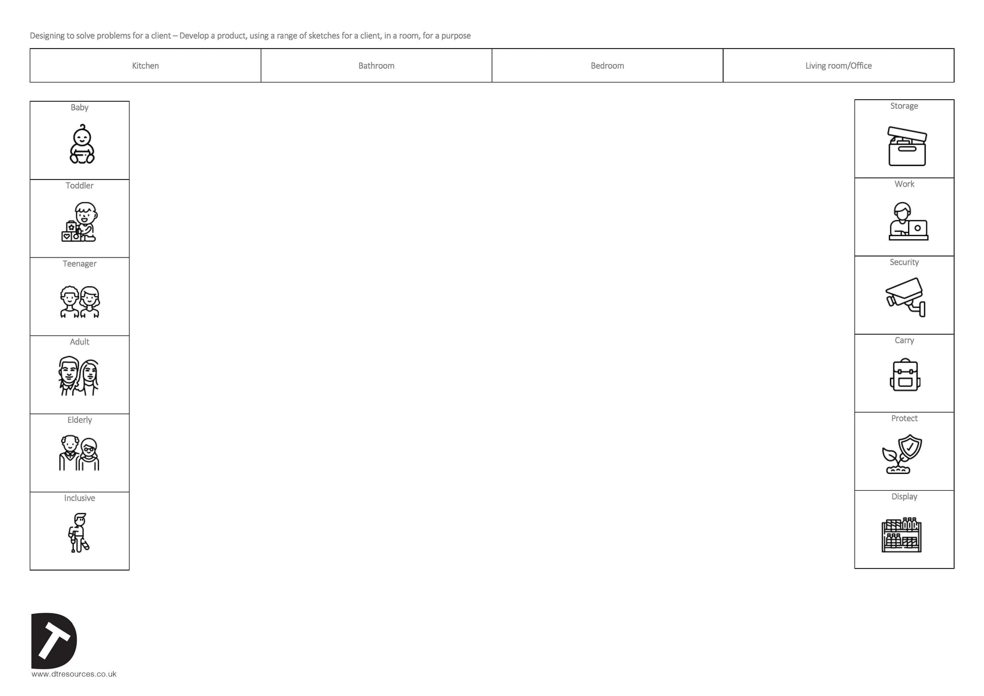 Students simply pick a client, a room and a purpose, then start to develop a product on the page.