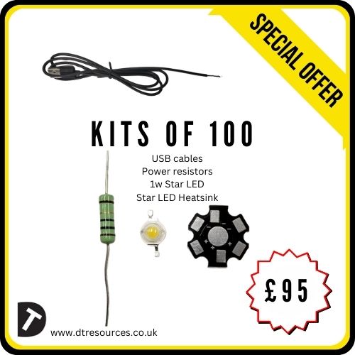 These power LED stars offer an extremely high light output at a low cost. Each kit contains 100 sets: