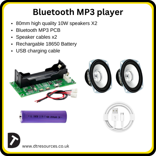 This kit contains all you need to build a high quality Bluetooth MP3 player.
